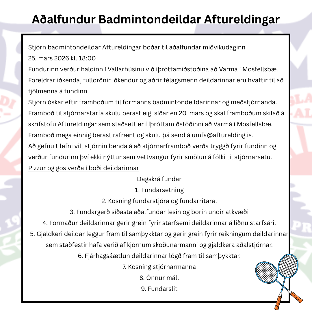 Aðalfundur Badmintondeildar Aftureldingar
