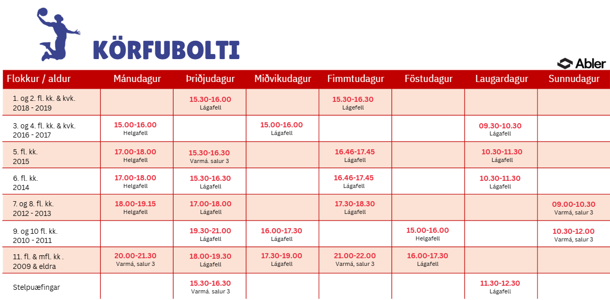 Tímatöflur Allar frekari upplýsingar veitir yfirþjálfari KKD-Aftureldingar Sævaldur Bjarnason saebi@simnet.is